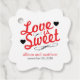 Alte modische Liebe ist süße Liebesmarken (Schwarz / Rot / Weiß)... Diese lustige und schicke Liebe ist süße Gefälligkeitsmarken haben ein altmodisches Gefühl für sie mit einem romantischen Gefühl aus den zwei Herzen und sind ideal für Gastgeschenke Hochzeiten oder eine Hochzeit-Süßigkeiten-Bar / Buffet voll von Schokolade, Sauger, Lollipops, Tasse, und Zucker. Lass deinen Gästen wissen, eine Leckerei Zuhause mit ihnen zu nehmen, um sich an deine Hochzeit zu erinnern. Das Design bietet eine Reihe von skurrilen Schriftart mit den Braut- und Bräutigamen sowie dem Hochzeitstag. Ideal für eine Hochzeit mit Süßigkeiten. Ideal für eine Hochzeit in Urlaubsort. Ideal für Braut oder Bräutigam mit einem süßen Zahn. Eine gute Idee für ein Brautparty oder einen Junggeselinnen-Abschied. Vollständig anpassbar...ändern Sie einfach die Namen und die Daten und Ihre Gunst-Tags sind für die Verwendung bereit. Erhältlich in einer breiten Farbpalette, die Ihren Hochzeitsfarben entspricht. Unter WindyCityStationery.com finden Sie unsere komplette Produktreihe "Liebe ist süß" Etiketten in einer breiten Farbpalette sowie die passenden Briefmarke "Liebe ist süß", Dankeschön-Karten, Rücksendeadressen-Aufkleber, speichern Sie die Daten und vieles mehr.