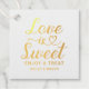 Elegante, kundenspezifische Hochzeitsfavoriten-Tags zeichnen sich durch echte Goldfolientypografie auf der Vorderseite aus, die moderne Herzkalligrafie-Schrift "Liebe ist süß", ein stilvolles Minimalmonogramm Braut und Bräutigam-Vornamen und eine personalisierte "Leckerei genießen"-Nachricht. Auf der Kartenrückseite befindet sich ein Foto des Paares.