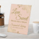 Dieses hübsche Tischschild eignet sich perfekt für eine Leckerei an Ihrem Hochzeitsempfang. Es zeichnet sich durch ein schlichtes, aber elegantes, helles Orange- oder Korallenpfirsichdesign aus, mit goldenen Schriftzeichen und goldenen Imitaten mit Spitzen in den Ecken. Das Schild lautet: Liebe ist süß, bitte nehmen Sie eine Leckerei! Es gibt Platz für Ihre Namen und das Hochzeitstag unten.