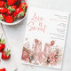 Eleganter Champagner und Strawberry Boho Blush Pink Summer Bridal Dusche Einladung mit Kalligrafie "Liebe ist süß"