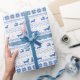 Niedliche Dackel Lover's Weihnachtswackelpapier. Festlich blau-weiße Weihnachtspullover-Stil mit Dackeln, die Urlaubspullover tragen, und einem Eichhörnchen, das auf einem Schlitten von Dackeln gezogen wird. Text: Liebe Joy Peace Dackel Hunde. Original Geschenkpackung für Würstchen Hunde Liebhaber. Besuchen Sie Jenn’s Doodle World für noch mehr Produkte mit diesem lustigen Dachshund-Design, inklusive noch mehr Geschenkverpackungen.