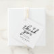 Ein kühner, dekorativer Schriftart erweckt sofort den Eindruck und Set für die meisten Teile dieser modernen, minimalistischen Hochzeitssuite. Die Gastgeschenk Hochzeit-Tag, hier in schwarz auf weiß gezeigt, verfügt über eine Vorlage, um leicht eine persönliche Danksagung, Ihre Namen und Hochzeitsdatum hinzuzufügen. Eine von Hand gezeichnete Herzform vorne und eine Blüte auf der Rückseite verleihen zusätzlichen lustigen Akzenten. Suchen Sie ID940 um alle Produkte in diesem Hochzeitsfest Set zu sehen.