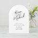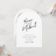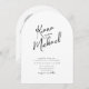 Elegante handgeschriebene Schrift- und Pinselstrich-Akzente werden verwendet, um die Teile dieser schönen, modernen Hochzeitssuite zu kreieren. Die bogenförmige Hochzeit "Einladung" hier zeigt auch Ihr Foto und eine optionale Nachricht auf der Rückseite. Fügen Sie einfach Ihr eigenes Bild, Ihre Namen und Ihre Ereignisdetails mithilfe der bereitgestellten Vorlage hinzu. Suchen Sie ID940 um weitere Teile und Farboptionen für dieses Set zu sehen.