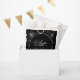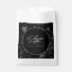 Elegante handgeschriebene Schrift- und Pinselstrich-Akzente werden verwendet, um die Teile dieser schönen, modernen Hochzeitssuite zu kreieren. Der hier in Weiß auf Schwarz abgebildete, koordinierende Gefälligkeitsbeutel zeichnet sich durch ein handgezeichnetes Blumenmuster für einen auffälligen Hintergrund aus. Fügen Sie einfach Ihre eigene Nachricht, Namen und Hochzeitsdatum mit der bereitgestellten Vorlage hinzu. Suchen Sie ID940 um weitere Teile und Farboptionen für dieses Set zu sehen.