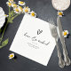 Elegante handgeschriebene Schrift- und Pinselstrich-Akzente werden verwendet, um die Teile dieser schönen, modernen Hochzeitssuite zu kreieren. Die Hochzeitszeitung Serviette hier in schwarz auf weiß gezeigt, verfügt über eine Vorlage, um leicht eine persönliche Danksagung, Ihre Namen und Hochzeitsdatum hinzuzufügen. Eine handgezeichnete Herzform verleiht zusätzlich einen lustigen Akzent. Suchen Sie ID940 um alle Produkte in diesem Hochzeitsfest Set zu sehen.