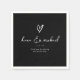 Elegante handgeschriebene Schrift- und Pinselstrich-Akzente werden verwendet, um die Teile dieser schönen, modernen Hochzeitssuite zu kreieren. Die Hochzeitszeitung Serviette hier in weiß auf schwarz gezeigt, verfügt über eine Vorlage, um leicht eine persönliche Danksagung, Ihre Namen und Hochzeitsdatum hinzuzufügen. Eine handgezeichnete Herzform verleiht zusätzlich einen lustigen Akzent. Suchen Sie ID940 um alle Produkte in diesem Hochzeitsfest Set zu sehen.