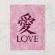 Liebe Kanji Symbol auf rosa Textur Postkarte