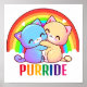 Niedliche Katzen, die vor einem Regenbogen umarmt sind. Für Katzen- und Regenbogenliebhaber und LGBTQ: lesbisch, schwul, bisexuell, transgender, que. Zeigen Sie Ihren Stolz (Purride) mit diesen niedlichen kleinen Kätzchen im Stil von Kawaii und Chibi Art.