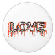 Liebe. Typografisches Design. Nur ein Single mit einem dekorativen tropfenden Schriftart. Das ist die Liebe, voller Hoffnungen, Tränen, Herzblutungen. Bekleidung und andere Produkte für jedermann. Keramikknauf.