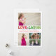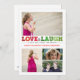 Schaukasten drei Ihrer LieblingsFotos mit dieser einfachen Karte von PiPo Presse. Mit einem handgeschriebenen Kreide-Schriftart des Spaßes in unterschiedliche Schatten von Rotem und von Grünem entworfen, sendet sie eine inspirierte Mitteilung "der Liebe u. des Lachens." Wünschen Sie Ihre Freunde und Familie glückliche Feiertage diese Jahreszeit mit Gedanken des Gelächters und der Liebe.