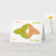 Diese Karte wurde für Tierfreunde, Vegetarier und Veganer konzipiert. Es zeigt das Gesicht eines Lammes, das aus einem grünen Muster besteht. Die Hälfte der Lämmer ist grün und symbolisiert den Frühling, eine Zeit, in der Lämmer geboren sind. Die andere Hälfte ist eine rustikale Orange, die Herbst oder Herbst symbolisiert, eine Jahreszeit, die viele der im Frühjahr geborenen Lämmer nie sehen werden. Dieses Design wird perfekt ergänzt durch seinen Slogan, Liebe Lämmer essen Blätter. Die Karte wurde leer verlassen, sodass Sie Ihren eigenen Gruß hinzufügen können. Klicken Sie dazu einfach auf den Button "Anpassen". Hier können Sie Ihren Text mit einer Reihe von Schriftart und Farben hinzufügen. Sie können auch die Hintergrundfarbe der Karte ändern.