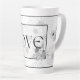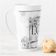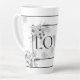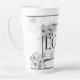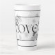 "Liebe" latte Tasse in Schwarz-Weiß-Blumenmuster.