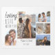 Chic Fleece Foto Decke, die Sie mit 5 Ihrer Lieblingsfotos personalisieren können. Dieses moderne Schwarz-Weiß-Design wird mit lässiger Schrift und knackiger Schriftart-Typografie versehen. Die Vorlage ist Set für Sie bereit, um Ihre Namen und Datum etabliert, sowie Ihre Fotos, von verlassen nach rechts. Die Formulierung lautet "liebend leben mit dir" - perfekt für romantische Paare oder Familien. Eine stilvolle Wahl für zeitgenössische oder minimalistische Dekoration - suchen Sie in unserem Shop nach alternativen Stilen und Farben.