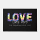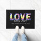 Diese personalisierte, "Liebe lebt hier" Türmatte wäre eine schöne Ergänzung zu jeder Zuhause! Ideal für Hochzeitsgeschenke oder Brautparty!