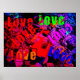 Das Wort "Liebe" wird in psychedelischen Farbtönen wiederholt, um einen Friedensband zu bilden. Dieses farbenfrohe und einzigartige Kunstwerk war Teil des Kalenders der digitalen Kunst, der aus Fotografien entstanden ist, die ich von Naturszenen gemacht und dann mit Farben, speziellen Pinseln, Filtern und Texten manipuliert habe, die als "Ein Jahr des Friedens" bezeichnet werden.