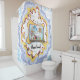 Dieser Duschvorhang zeigt einen originalen Einzelpanel-Comic aus der Welt von Toe’s Town.
