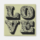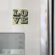 LIEBE-Quadratmagnet. Die Hintergrundfarbe kann angepasst werden.