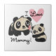 Ein Mama- und Babypandabär entwerfen mit einem rosa Hintergrund und ein Text und weißen Herzen und ein Text, der i-Liebe-Mama auf T - Shirts, Bodysuits, Tassen, Karten, Aufkleber, Taschen, Magneten liest, und mehr.