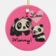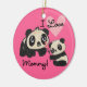 Ein Mama- und Babypandabär entwerfen mit einem rosa Hintergrund und ein Text und weißen Herzen und ein Text, der i-Liebe-Mama auf T - Shirts, Bodysuits, Tassen, Karten, Aufkleber, Taschen, Magneten liest, und mehr.