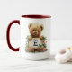 Diese hübsche Abbildung zeigt einen flauschigen Teddybär, der von sanften rosa Blume und grünen Blätter umgeben ist. Der Bär hält ein Schild mit der Überschrift "Liebe mehr" und fügt eine herzerwärmende Touch hinzu, die ideal ist, um Zuneigung auszudrücken. Die Beschriftung kann personalisiert werden.
