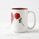 Eine schöne Valentinstag Liebe Sie mehr Tasse mit rotem Herzen und Rose.