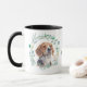 "LIEBE MY BEAGLE" erklärt diese Tasse für den Beagle Hundebesitzer. Jede Seite der Tasse hat ein schönes Aquarellbild eines Beagle in einem blau-grünen Blattkranz. Zwischen den beiden Bildern befindet sich der Text, der von Ihnen leicht angepasst oder sogar entfernt werden kann.
