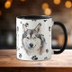 Diese Tasse für den sibirischen Husky-Dog-Besitzer zeigt ein Aquarellportrait eines Künstlers mit einem wunderschönen Husky. Das Bild wird zweimal gedruckt, und dazwischen ist ein oval mit dem schwarzen Text, der "Liebe mein Husky Hund" sagt. Die Oval- und Hundebilder werden auf einem Hintergrund platziert, der mit schwarzen Pfoten bestreut ist. Sie können den Text leicht in etwas Anderes ändern, oder ihn personalisieren, wenn Sie möchten.