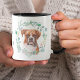 "LIEBE MY BOXER" erklärt diese Tasse für den Boxer Dog Liebhaber. Jede Seite der Tasse hat ein schönes Aquarellbild eines braunen und weißen Boxers in einem blau-grünen Blattkranz. Zwischen den beiden Bildern befindet sich der Text, der von Ihnen leicht angepasst oder sogar entfernt werden kann.
