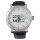 Liebe MEow Text und ein zeichn einer lustigen Katze mit grünen Augen. Eine lustige Armbanduhr für jeden.