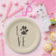 Liebe mit Pet Paw Print Brown Grunge Typografie Pappteller