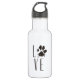 Eine Wasserflasche mit einer niedlichen Abbildung eines Tierpflasterdrucks in Braun mit Grundierung. In den Buchstaben wird das Wort "Liebe" mit dem Pfotendruck anstelle des Buchstabens "o" beschrieben. Phantastisch für Liebhaber von Haustieren.