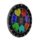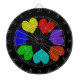 Dieses phantastische Dartboard zeichnet sich durch ein digital gestaltetes Bild eines Kreises von Lieben aus. Jedes Herz ist eine andere Farbe des Regenbogens. Rot, orange, gelb, grün, blau, indigo und violett sind eine lustige Möglichkeit, Ihre Liebe für einen Freund, eine Freundin, einen Ehemann oder eine Ehefrau zu äußern. Der Hintergrund ist schwarz, um eine maximale Wirkung zu erzielen.