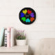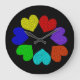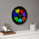Diese phantastische Uhr zeigt ein digital gestaltetes Bild eines Herzkreises der Liebe. Jedes Herz ist eine andere Farbe des Regenbogens. Rot, orange, gelb, grün, blau, indigo und violett sind eine lustige Möglichkeit, Ihre Liebe für einen Freund, eine Freundin, einen Ehemann oder eine Ehefrau zu äußern. Der Hintergrund ist schwarz, um eine maximale Wirkung zu erzielen.