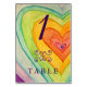 Malerei ist von konzentrierten Regenbogenherzen. Wörter merken "Tabelle 1" mit einem blüh, können aber mit eigenen Worten und Botschaften personalisiert werden. Erstellen Sie Ihr eigenes einzigartiges Tischkartendesign, indem Sie diese Vorlage für Ihre Hochzeitskarte, Ihren Empfang oder andere persönliche Veranstaltungsinformationen anpassen.