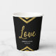 Diese modernen Papiertassen zeichnen sich durch ein elegantes geometrisches, Zickzack Design und das Wort "Liebe" in den Imitaten Goldfolie vor einem schwarzen Hintergrund aus. Sie eignen sich perfekt für eine Engagement Party oder ein Party zum Jubiläum. Personalisieren Sie es, indem Sie den Platzhalter-Text durch Ihre eigenen Informationen ersetzen. Für weitere Optionen, wie zum Beispiel den Schriftart zu ändern und ihn zu vergrößern oder zu verändern, klicken Sie auf den Button "Anpassen". *Bitte beachten Sie, dass das Zazzle-Wasserzeichen, das in der Zoomvorschau angezeigt wird, NICHT auf dem gedruckten Endprodukt erscheint. © Rosewood and Citrus