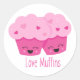 Ein Muffinpaar mit den Worten Liebe Muffins. So niedlich und toll für Valentine. Dieses Design sieht auf diesen Aufklebern wirklich effektiv aus
