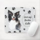 Dieses Mauspad für den Besitzer des Border Collie Dog zeigt ein schönes Portrait eines Künstlers von einer schwarz-weißen Border Collie. Neben dem Bild ist eine Oval mit dem schwarzen Text, der "Liebe my Border Collie" sagt. Das Oval- und Hundebild wird auf einem blauen grauen Hintergrund platziert, der mit schwarzen Pfoten und weißen Knochen bestreut ist. Sie können den Text leicht in etwas Anderes ändern, oder ihn personalisieren, wenn Sie möchten.