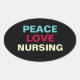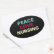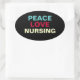 Unsere Peace Liebe Nursing Oval Sticker sind perfekt für den Nurses Day oder für jeden Anlass! Das Design enthält Text in blau, rot und weiß vor dunklem Hintergrund. Preis für das Blatt mit Mengenrabatten vorhanden!