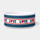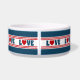 Liebe mit Herzform im nautischen Stil auf blau, rot und weiß gestreiften Hintergrund