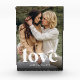 Erschaffen Sie einen süßen Sake Ihrer Hochzeit, Flitterwochen oder besonderen Augenblick mit diesem schönen, speziell für Paare geeigneten Acrylblock. Personalisieren Sie sich mit einem bevorzugten vertikalen Foto, mit "Liebe" überlagert in Retro-Weiß-Schrift, und Ihre Namen darunter.