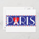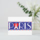 Entworfen im Stil eines Reisekofferaufklebers, mit den fetten Buchstaben "PARIS" in Pariser Schrift. Der Eiffelturm über einem Herzen bildet das "A" in Paris.