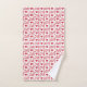 Ein Set mit Badehandtuch, das mit einer roten Liebe gebaut wurde. Passen Sie den weißen Hintergrund, die Mustergröße unter anderen Optionen an.