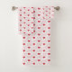 Ein Set mit Badehandtuch, das mit einer roten Liebe gebaut wurde. Passen Sie den weißen Hintergrund, die Mustergröße unter anderen Optionen an.
