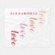 Dies ist ein modernes, minimales, personalisiertes Skripttypografie-Design. Es hat die Meldung "Liebe Liebe Liebe Liebe" in einem Skripttypografie-Muster und Platz für Sie, um Ihren Namen hinzuzufügen. Es ist in trendigen warmen Regenbogenfarben, rot, rosa, orange und gelb. Dieses stilvolle Design eignet sich perfekt für ein personalisiertes Geschenk oder ideal als neue Ergänzung zu Ihrer Wohngestaltung. Fügen Sie zum Personalisieren einfach Ihren Namen mit dem personalisieren dieses Textfeld hinzu. Karo aus dem Design-Editierwerkzeug, um die Farben oder den Schriftart zu ändern. Wenn Sie Hilfe bei Personalisierung, passenden Produkten oder einem benutzerdefinierten Design benötigen, kontaktieren Sie mich über zazzle Chat oder per E-Mail: ursuladawnmoon@gmail.com