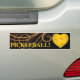 Schwarzer Hintergrund-Autoaufkleber mit gelbem Herzpickleball und -strudel.