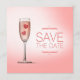Die Save the Date Hochzeitsankündigung mit niedlichem und romantischem Design und einem Glas rosa Champagner mit zwei roten Bonbonherzen. Personalisieren Sie es mit Ihren eigenen Informationen oder passen Sie es weiter an, wenn Sie das Layout bearbeiten möchten.