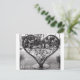 Schwarz-Weiß-Bild der schmiedeeisernen, herzförmigen Skulptur und eine passende Botschaft der Liebe.