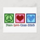 Niedliche Kreuzstickerei für jemanden, der Lieben, Dinge zu schaffen. Dieses Cross Stich-Geschenk der Peace Liebe besticht durch ein Friedenszeichen, ein Herz und ein hübsches Schnittmuster.