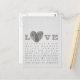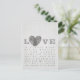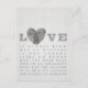 Diese Grußkarte enthält eine Liste von Wörtern oder Sprichworten, die sich auf die Liebe oder politische Sicht der Liebe beziehen. Das Herz des Fingerabdrucks ist es, zu repräsentieren, wie Liebe für jeden einzigartig ist