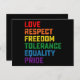 Liebe respektiert Freiheit Toleranz Gleichheit Pri Postkarte